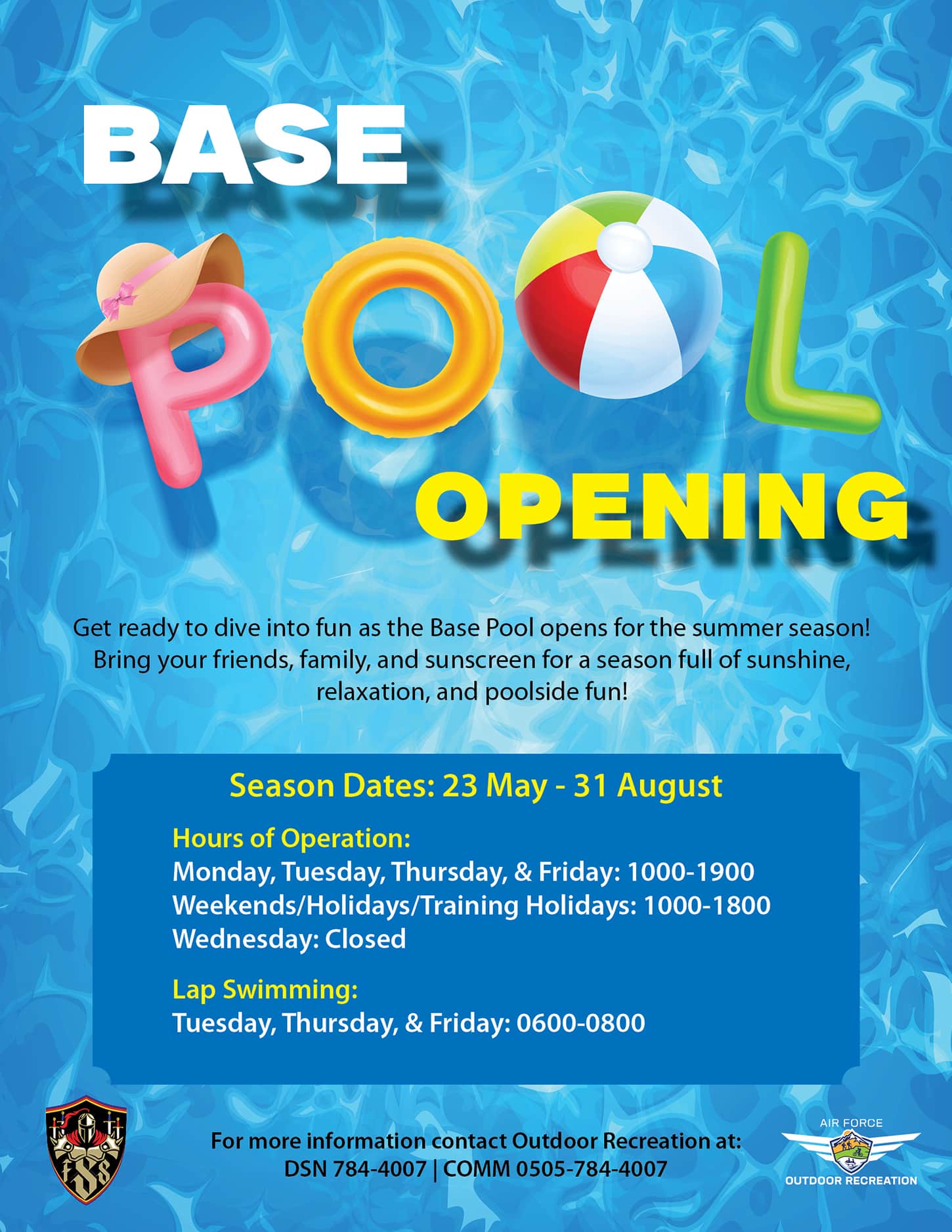Base Pool inquiries/concens may be adressed in person at Outdoor Recreation, Bldg. 1304 or email them at osanodr@gmail.com