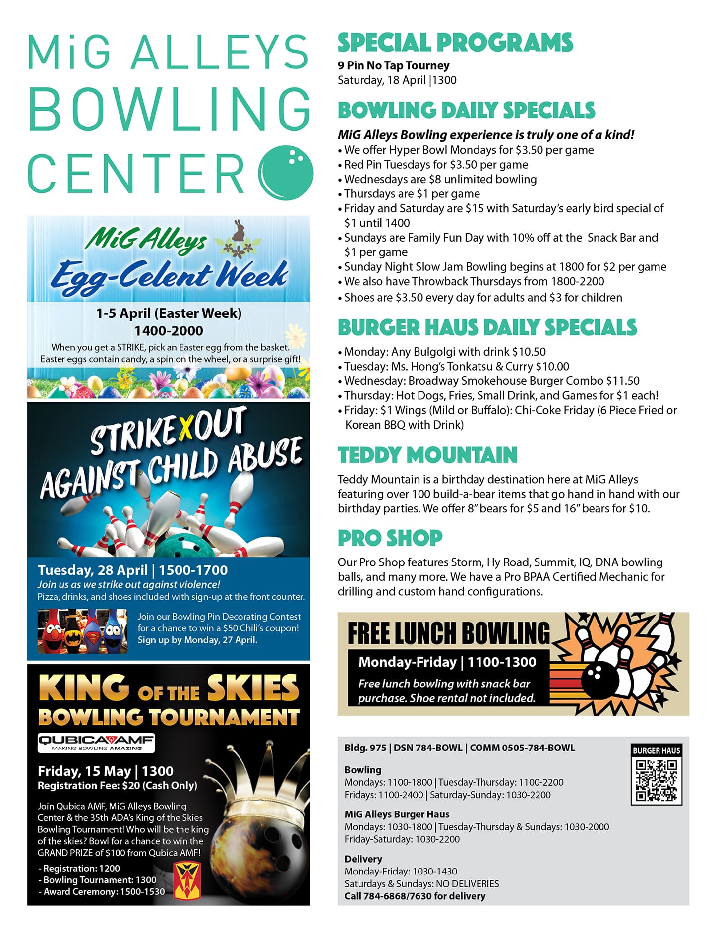 *Not available for birthday party or kids lanes.