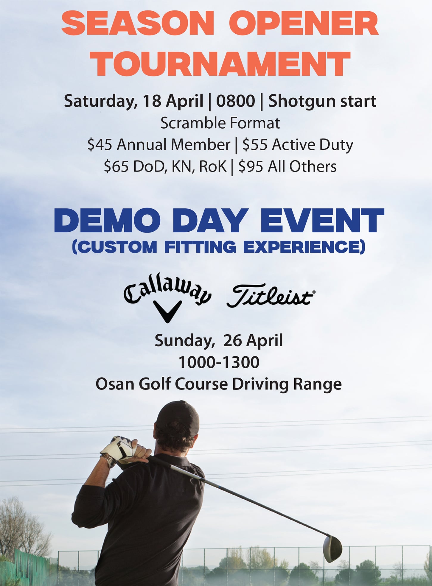 Every season the Lakes at Osan host a number of tournaments and championships to help you keep your competitive edge. Check out the schedule for times, dates, and types. Clinics are scheduled April-October for both juniors and adults at all levels.